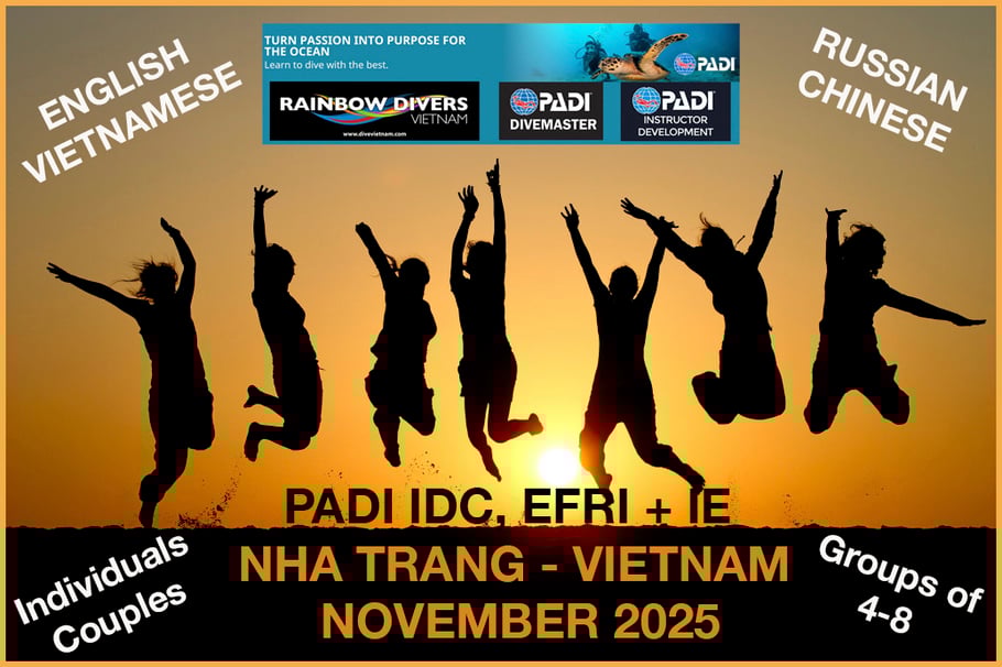 Rainbow Divers established PADI in Vietnam in the mid ‘90s and are now synonymous with professional diving and training throughout the country with PADI 5 star centres in Saigon, Nha Trang + Whale Island. They have the senior PADI Course Director, Jeremy Stein and an International Pro-Team at the only PADI CDC, 5 Star IDC Centres in Vietnam.
