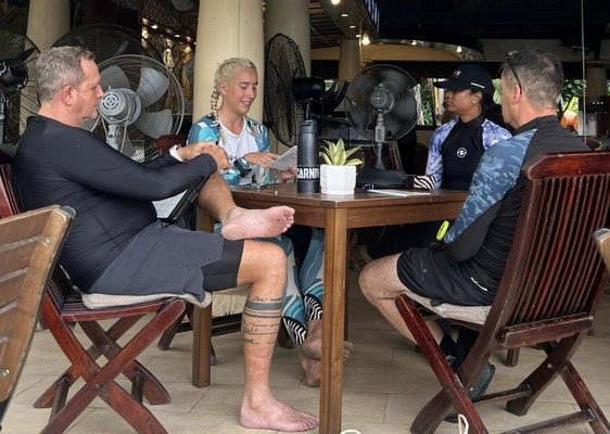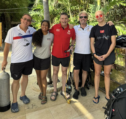 Minh, Holly + Lene with PADI Examiner Rob and new IDC Staff Instructor Mike